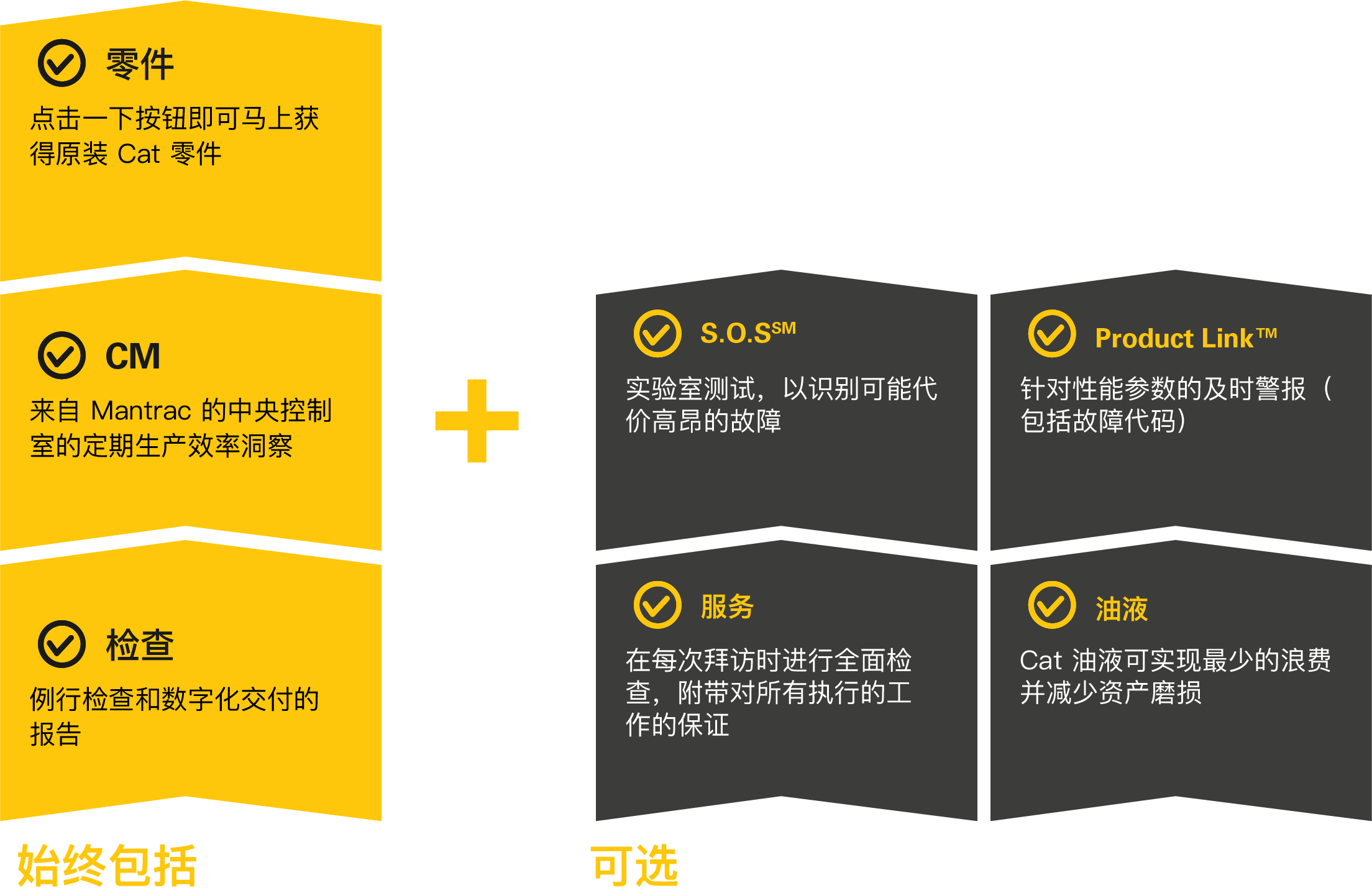 作为标准,每份 CVA 附带状态监控、按需保养套件和状态监控服务。此外,您可以选择用我们的增值服务来定制计划。