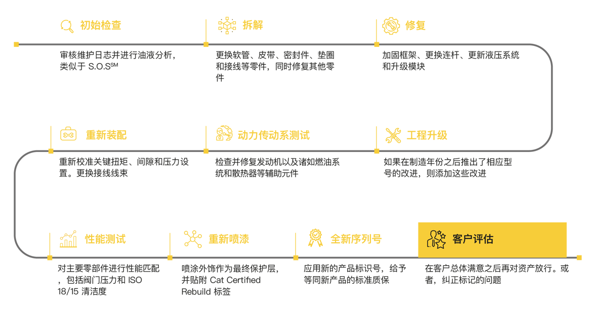 我们执行 350 多项测试,确保您的翻新资产恢复如新,并会提供全新序列号和质保包。随着生命周期的重新开始,您的设备将实现最高的燃油效率和生产效率。